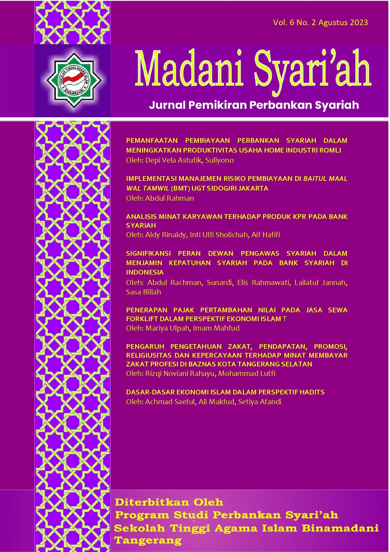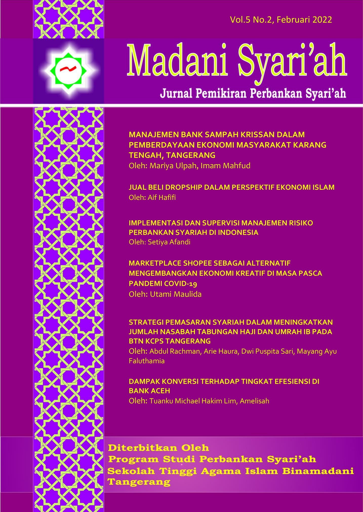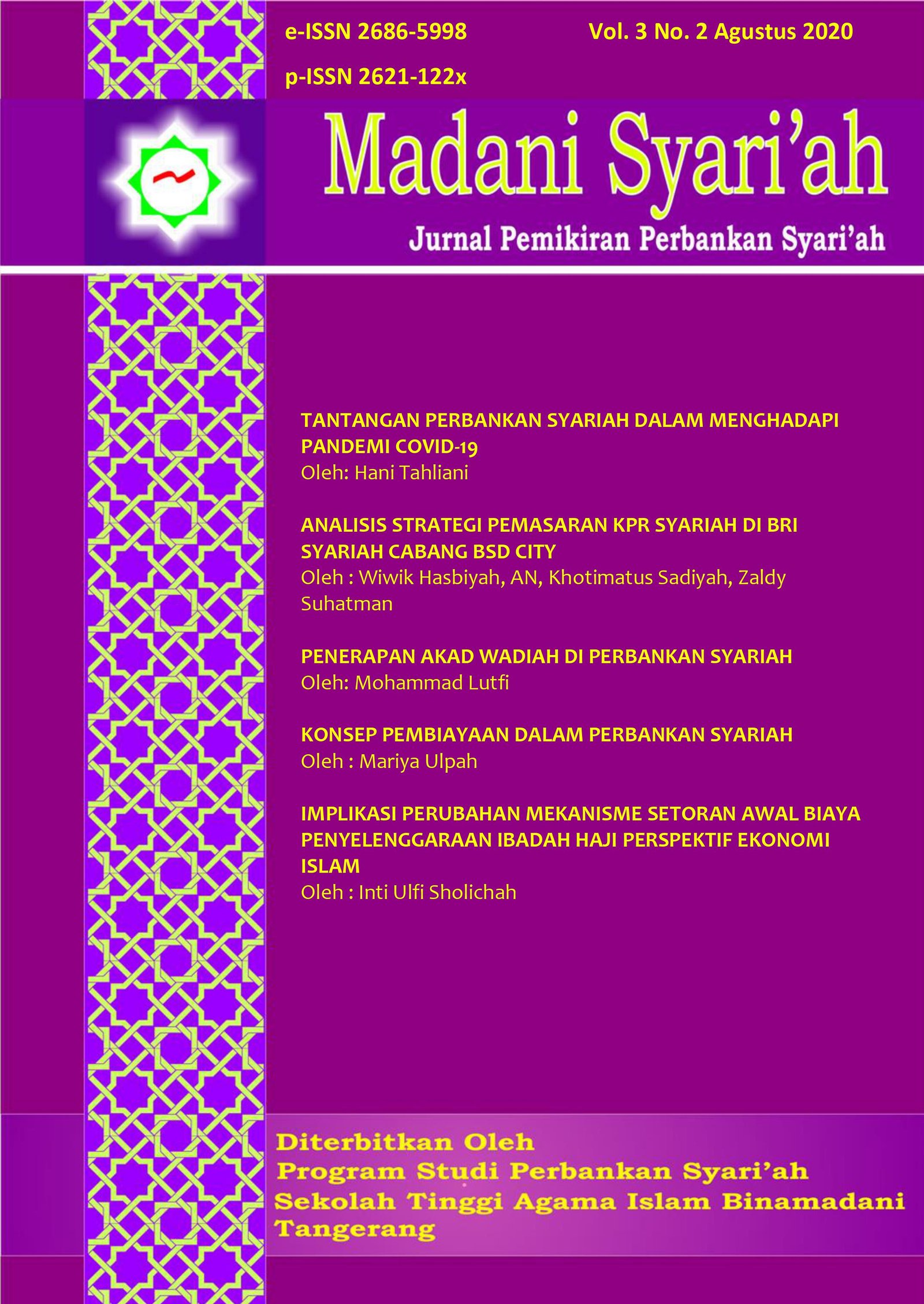 Madani Syari'ah : Jurnal Pemikiran Perbankan Syari'ah