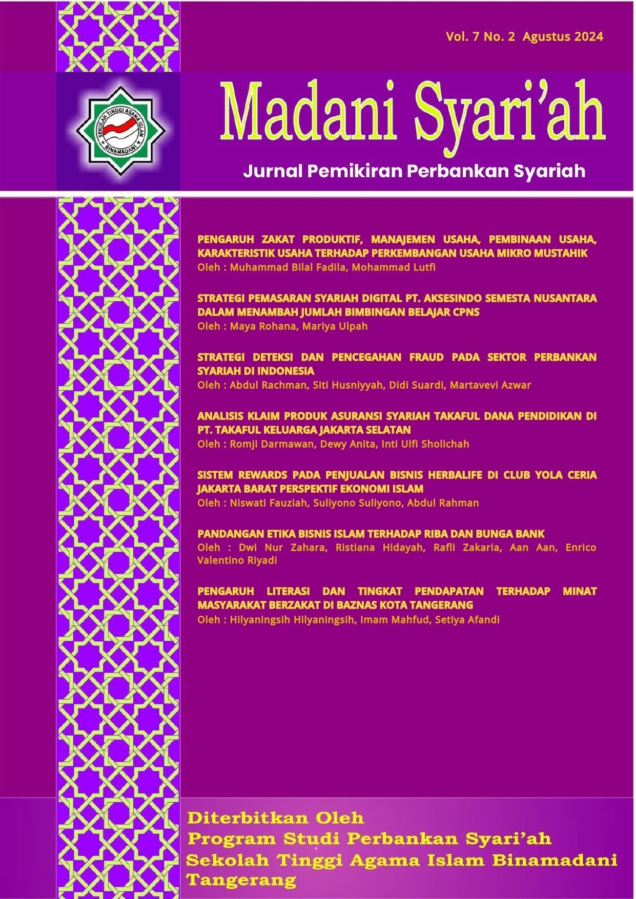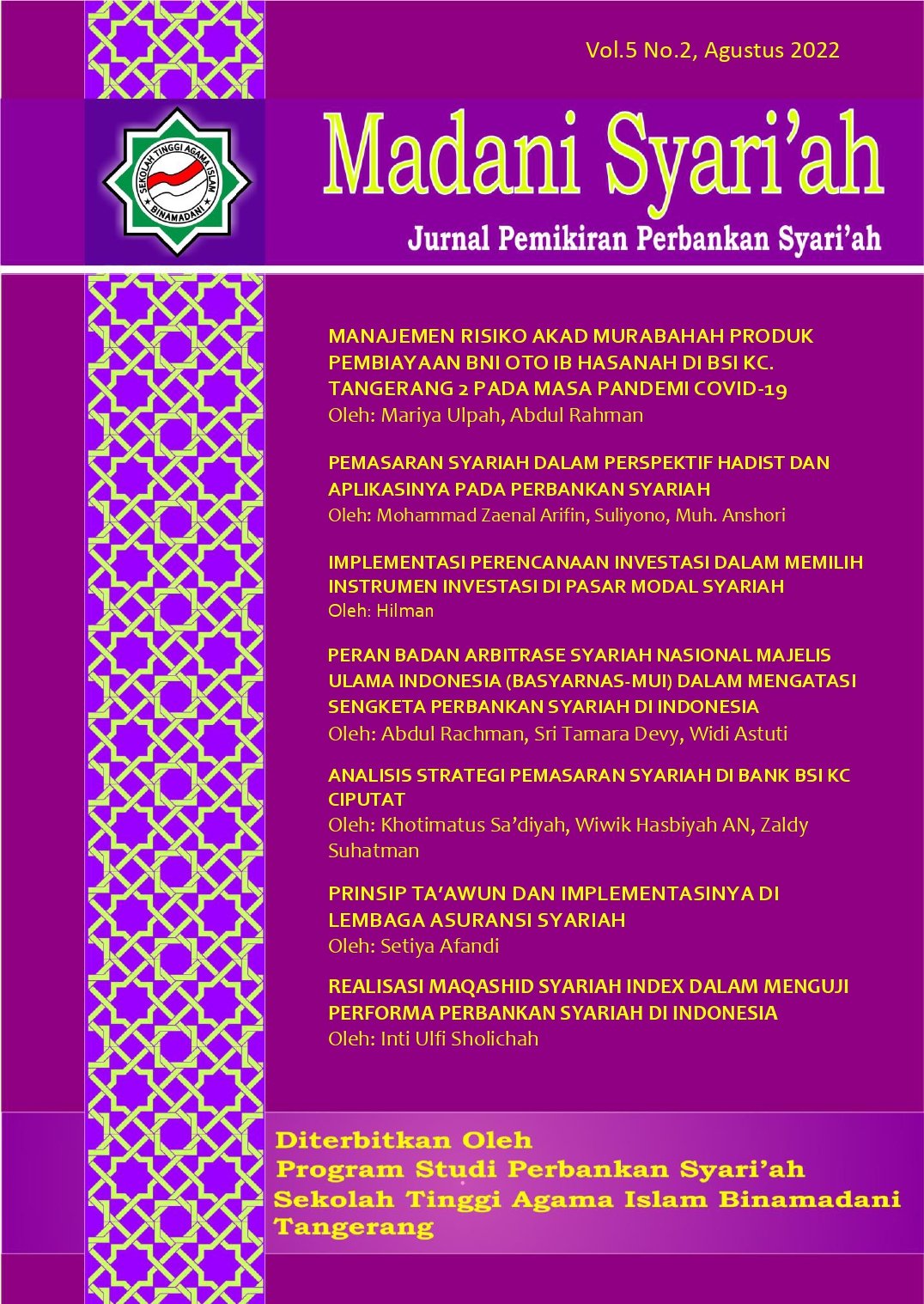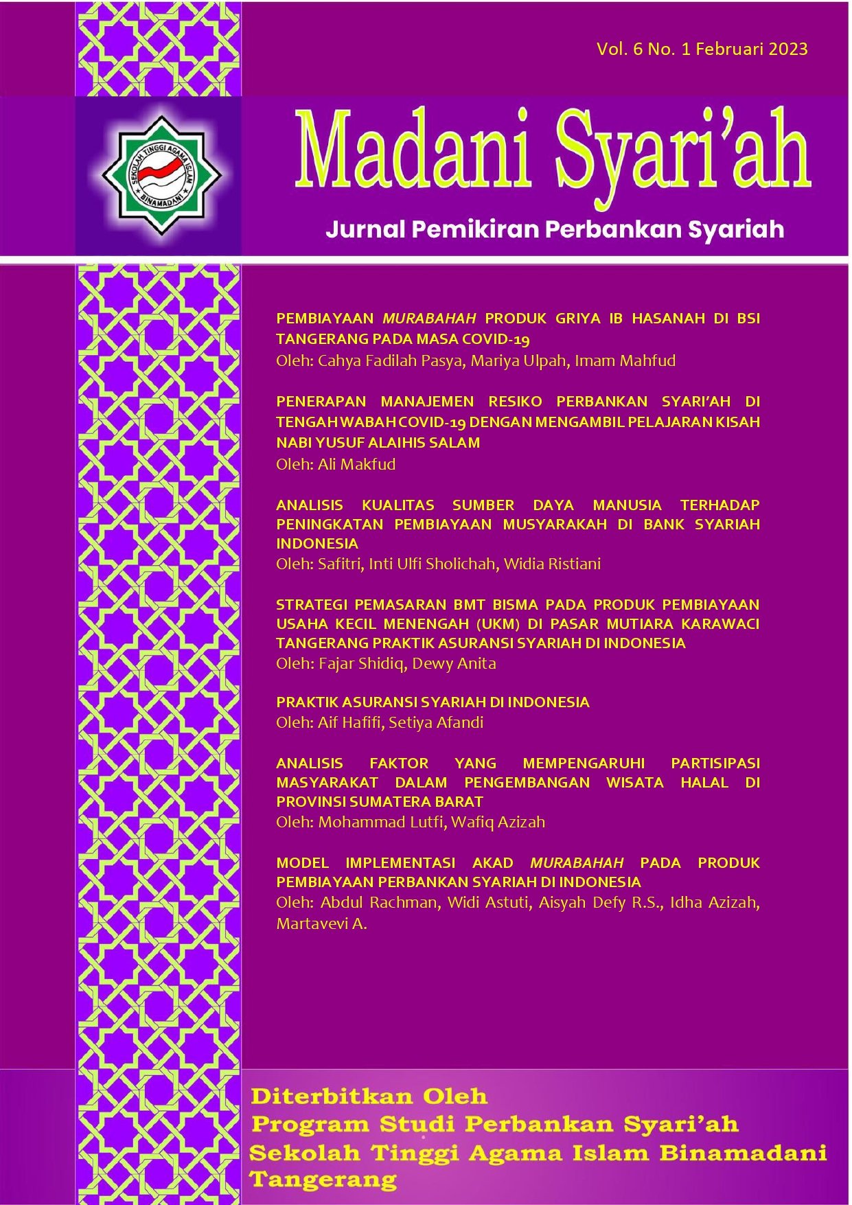 Madani Syari'ah : Jurnal Pemikiran Perbankan Syari'ah